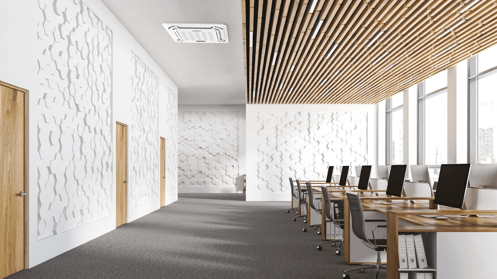 Касетний кондиціонер KAISAI Super Slim (KCD) — це універсальний пристрій, який завдяки компактним розмірам і сучасному дизайну ідеально підходить для приміщень з підвісними стелями з обмеженим технічним простором, забезпечуючи ефективне охолодження та обігрів з рівномірним розподілом повітря в чотирьох напрямках.